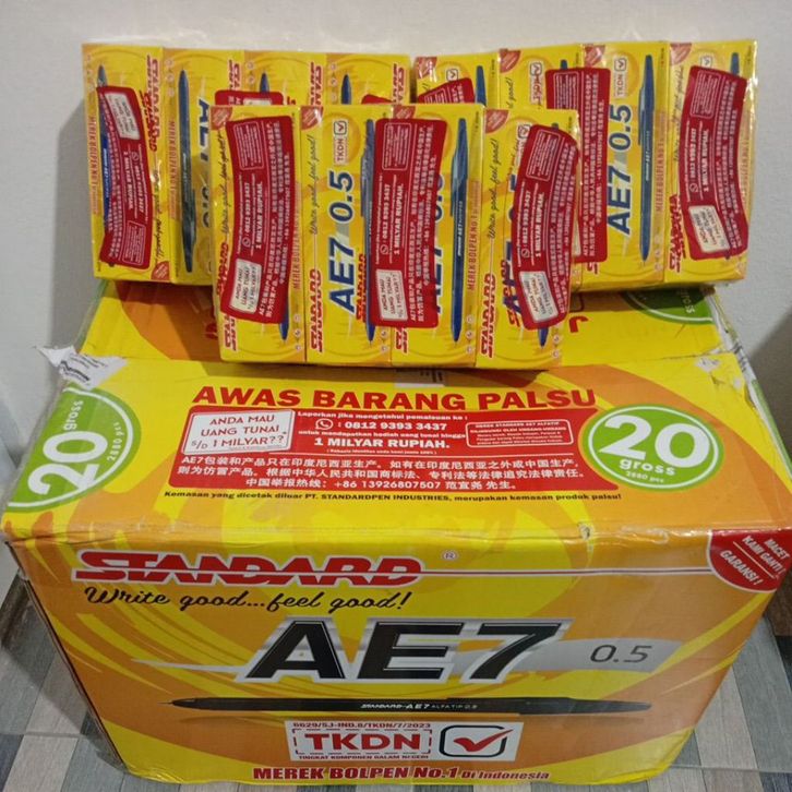 PULPEN STANDART AE7 0.5 HITAM/BIRU 1 BOX ISI 12 PCS PAKET BUNDLE PAKET HEMAT GRATIS ONGKIR
