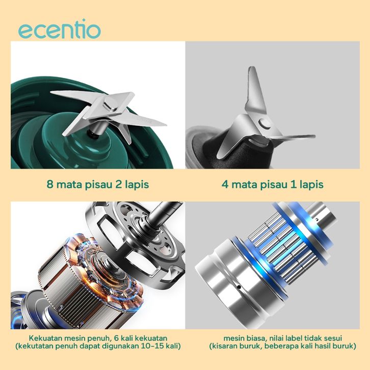 [Mall] BLENDER BUAH / BLENDER BUAT JUS / ECENTIO KACA BLENDER 8 PISAU JUICER MINI BLANDER 380ML +380ML PORTABLE