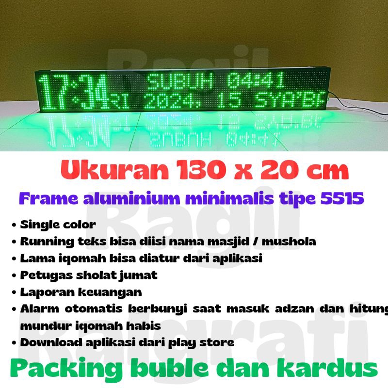 Jam Sholat Digital Masjid JWS P10 WIFI Jadwal sholat runing teks Jam Masjid uk 130 x 20 cm