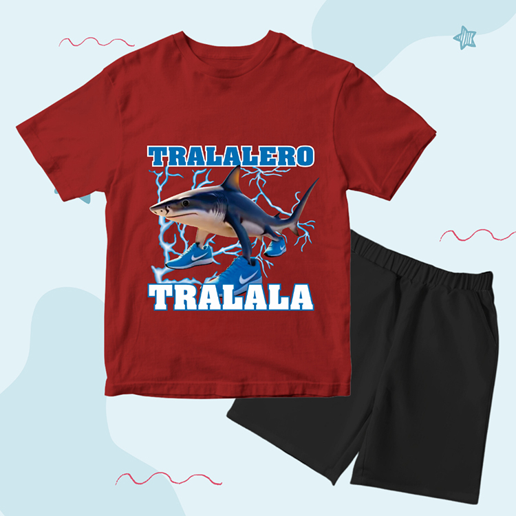 Baju Kaos Setelan Distro Anak Laki Laki Tema Anomali Karakter Tralalero Tralala Keren Umur 1 - 10 Tahun Bahan Tebal