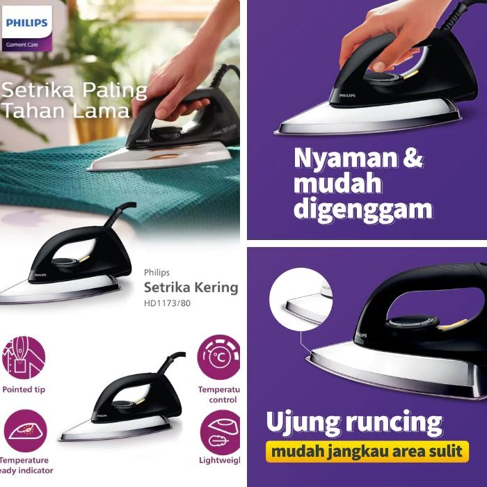 Gratis Ongkir / Gosokan Murah /Setrika Philips Setrika HD1173 Gosokan Listrik Tapak Keramik | Setrikaan Phillips HD 1173