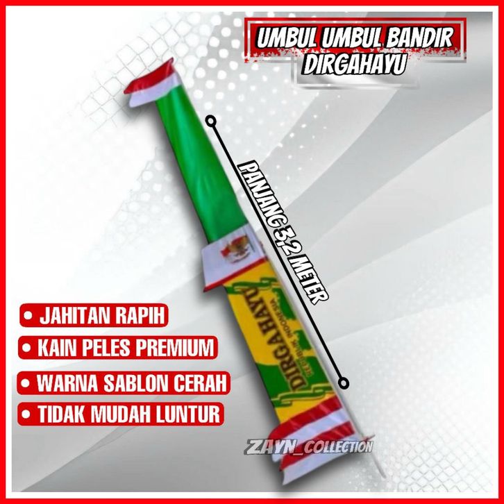ISI 20 PCS ( 1KODI)BENDERA UMBUL -UMBUL PANJANG BANDIR MERAH PUTIH DIRGAHAYU