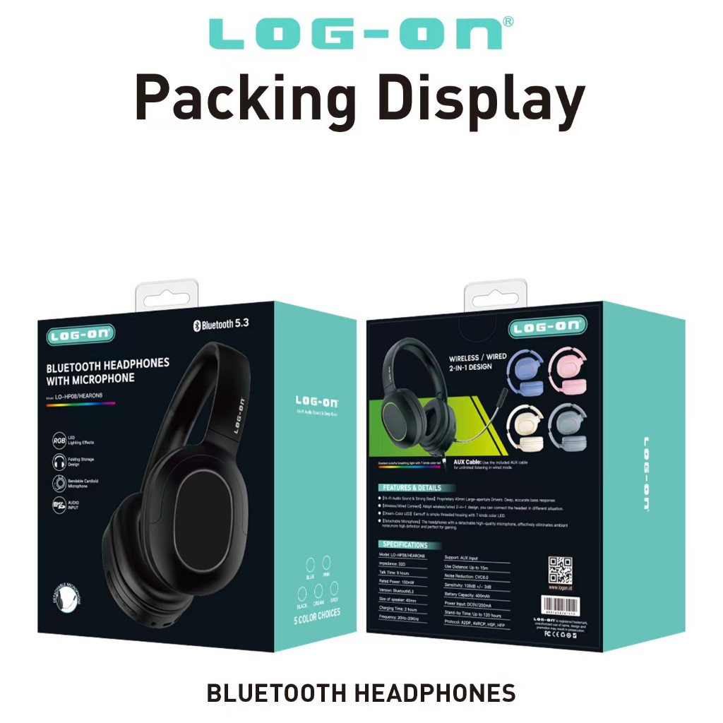 HEADPHONE STEREO FULL BASS WIRELESS BT5.3 WIRED 2IN1 HEARON8 LO-HP8 LOG ON