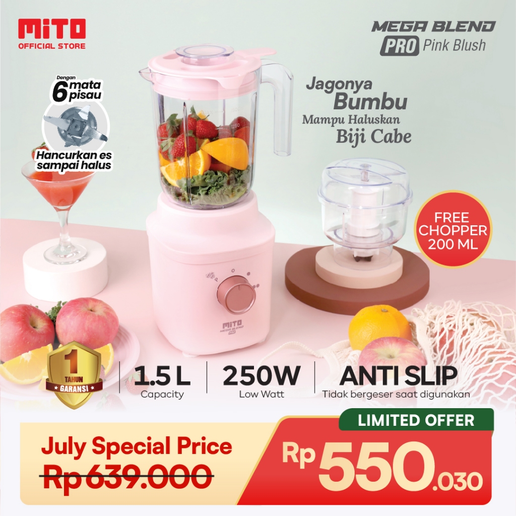 MITO MEGA BLEND PRO BL300 - 1,5L Jar 2 Tingkat Kecepatan + Pulse + 6 Mata Pisau dengan Ice Crusher