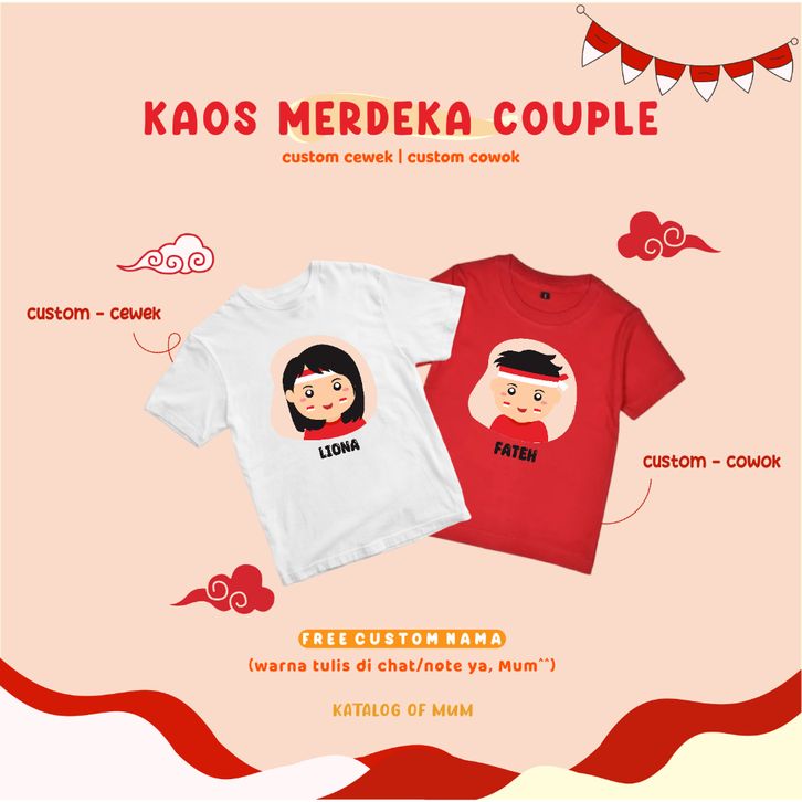 KAOS ANAK 17 AGUSTUS KATALOG OF MUM Kaos Kemerdekaan Couple Anak Custom Nama Unisex Lengan Pendek Cotton Combed 30s 1