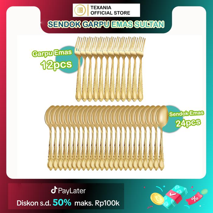 TEXANIA Sendok Emas Stainless Steel 2 Lusin Garpu Emas Stainless Steel 1 Lusin Makan Kitchenware