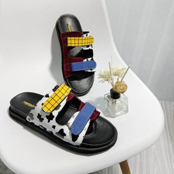 BEST SELLER Mqstars Sandal Wanita Vintage Woody Strap 2 Sol Tebal Rainbow Platform Lucu Terbaru berkualitas terbaik