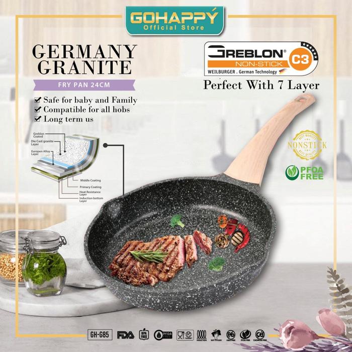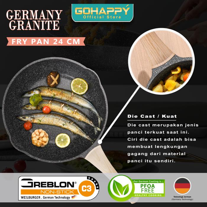 Penggorengan Granit Frypan Germany Granite GHG85 Panci frying pan Gohappy Dari Greblon C3 ORIGINAL JERMAN COATED