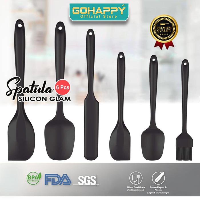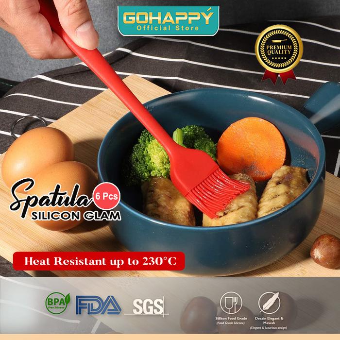 Spatula set Glam silicone 2027 sendok masak tuner 6pcs heat resistant (Tebal & Kuat) kuas makanan Peralatan Pink