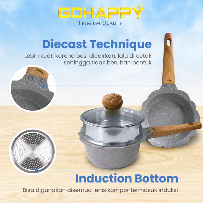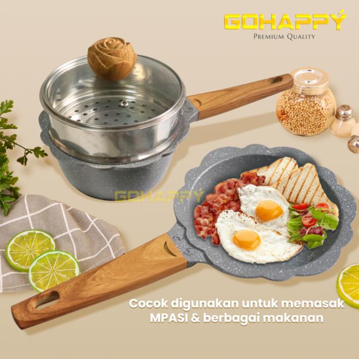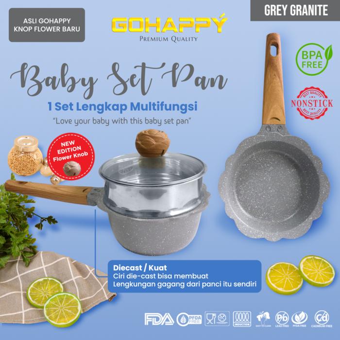 GOHAPPY Panci mpasi set 4in1 GREY ANTI LENGKET Wajan bayi fry pan sauce pan 16cm plus steamer