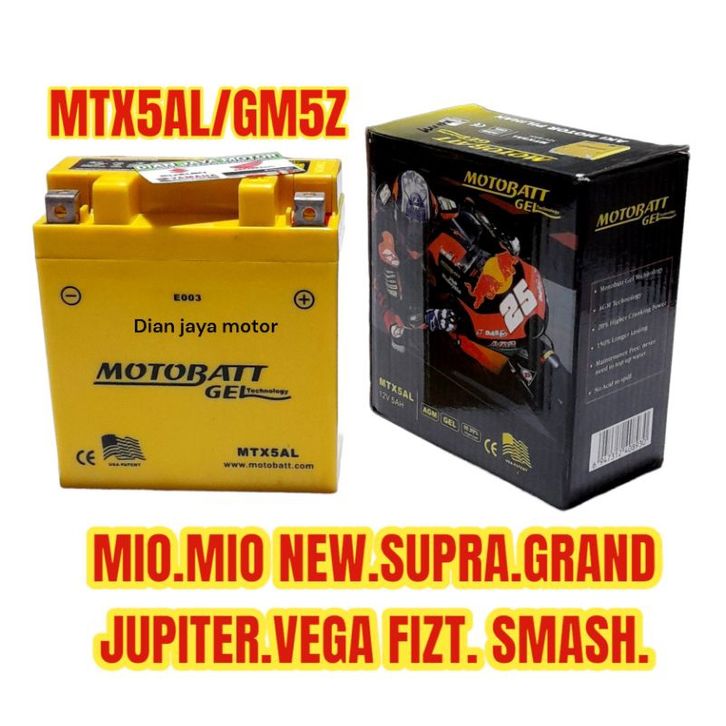 Aki accu Motor Motobatt MTX5AL GM5Z mf Ke mio mio new jupiter z vega fizr smash Sogun Supra Grand