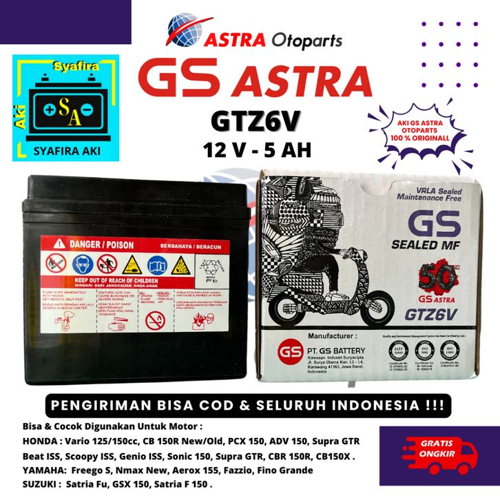 AKI MOTOR VARIO 125/15, NMAX NEW ALL CONNECTED, FAZZIO, FREEGO S GS ASTRA MF GTZ6V 5Ah 12V