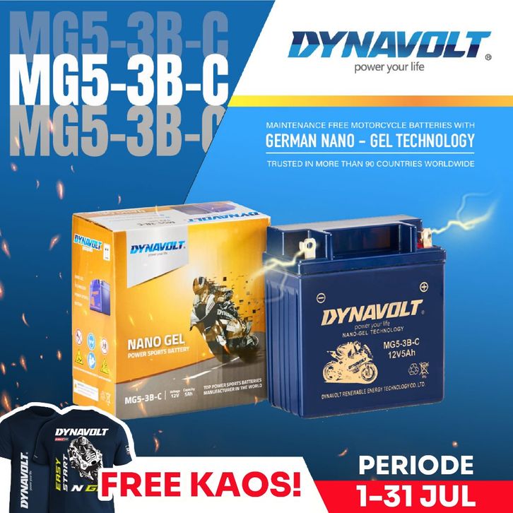 Dynavolt Aki Motor Nano-Gel MG5-3B-C 5Ah - Supra x/fit, Mio, Vega, Jupiter.
