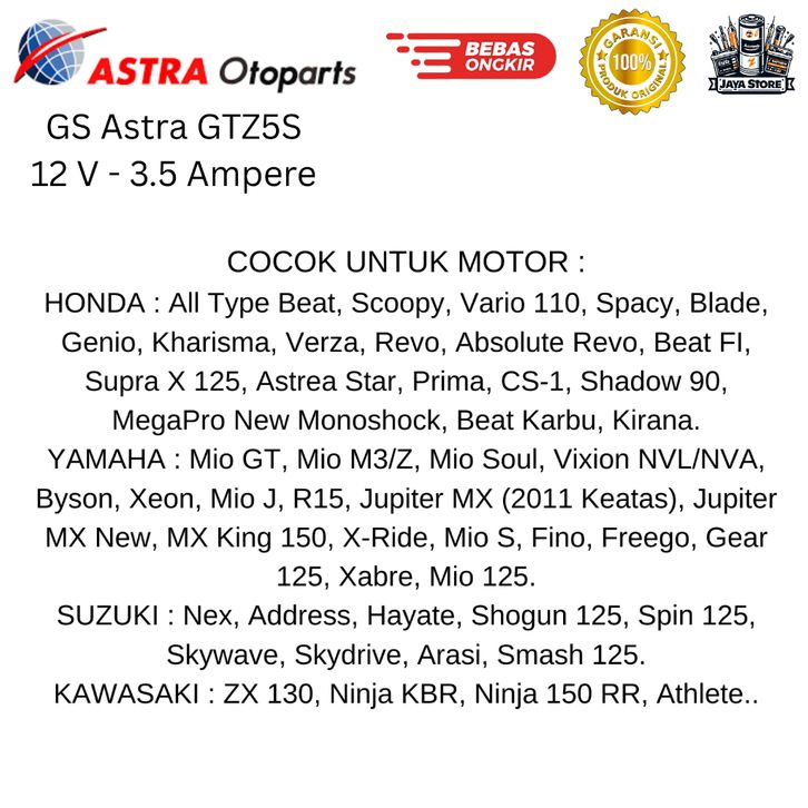 Aki Ke GS Astra Orinal GTZ5S Motor Honda Beat FI/Kau, Honda Scoopy, Honda Vario Techno 11
