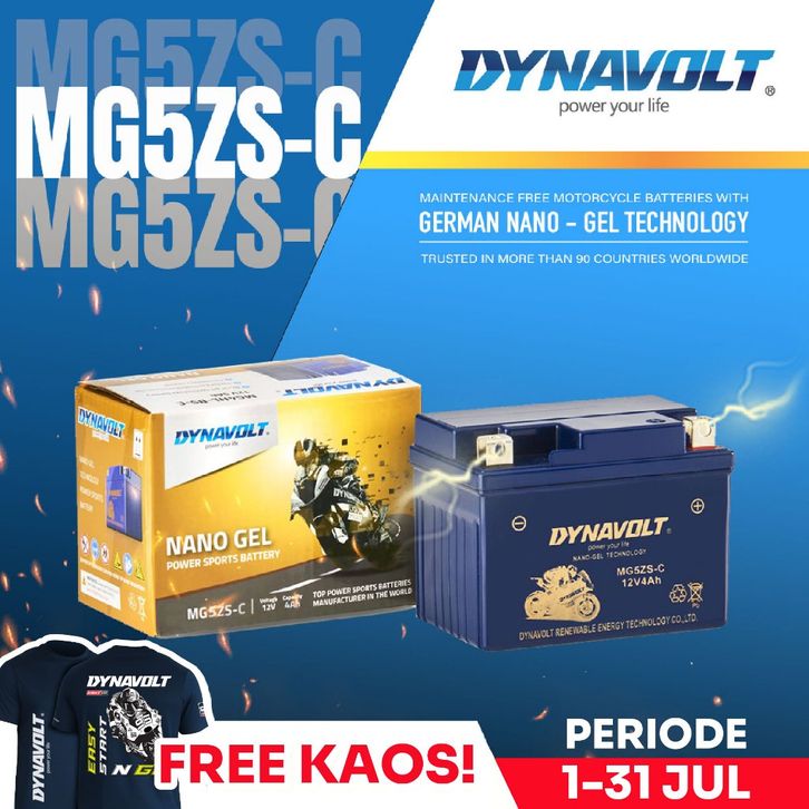 Aki Motor Honda Verza, Supra X 125, Vario 11 Dynavolt Nano Gel MG5ZS-C 4 AH 14 CCA