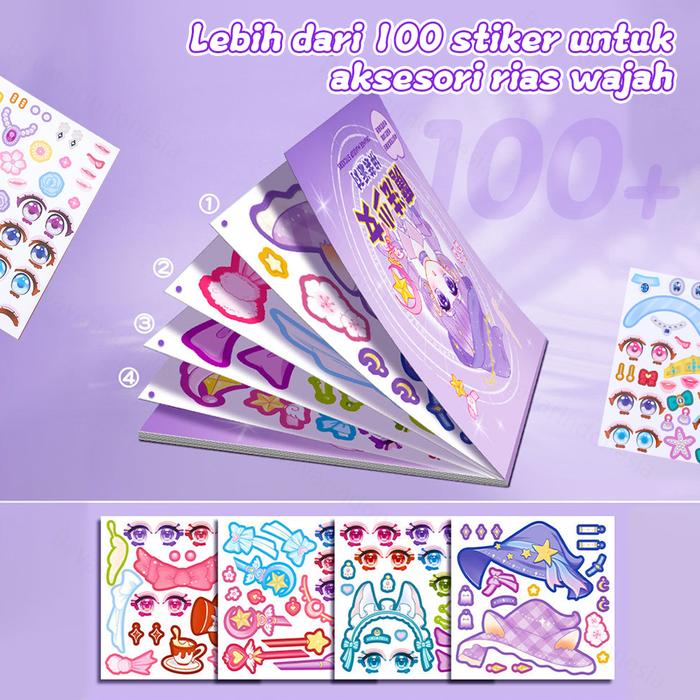Bevavar Stiker Make up DIY Buku Stiker Change Makeup Mainan Stiker Make up Sweet Girl Kertas Stationery - LolitaCarol