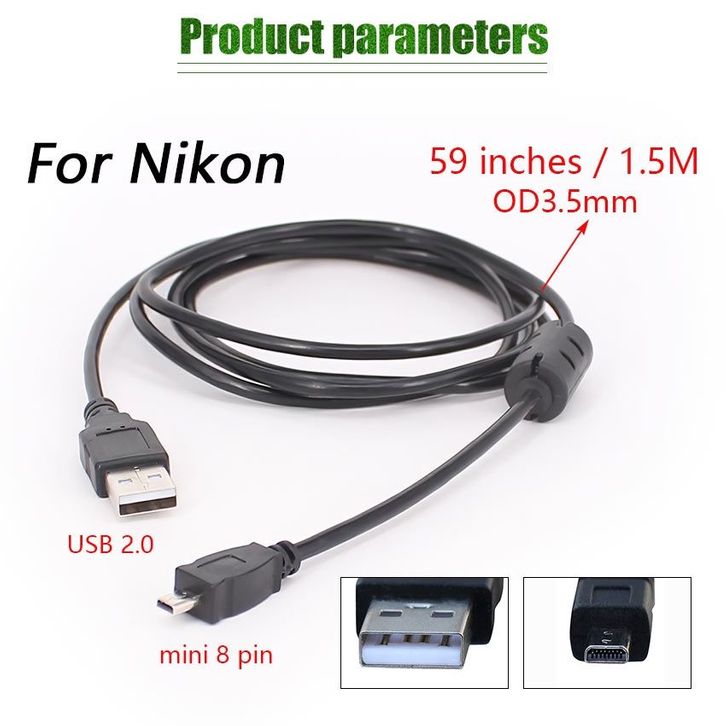 1.5M Kabel Data / Usb Cable Uc-E6 2.0 8Pin For Nikon Dslr Coolpix S2500 S2700 S3500 D7500 D750 D7200 D5500 D7100 /