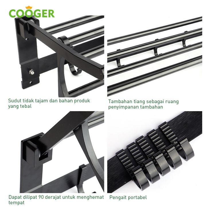 COOGER Gantungan Handuk Kamar Mandi Rak Handuk Dapat Dilipat Alumunium Towel Bar Anti Karat Towel Rack Foldable
