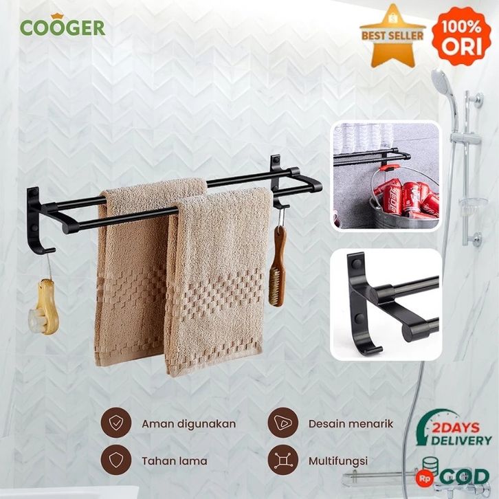 COOGER MEDAN Rak Handuk Kamar Mandi Gantungan Dinding Dapur Lipat dengan Pengait Alumunium Rack