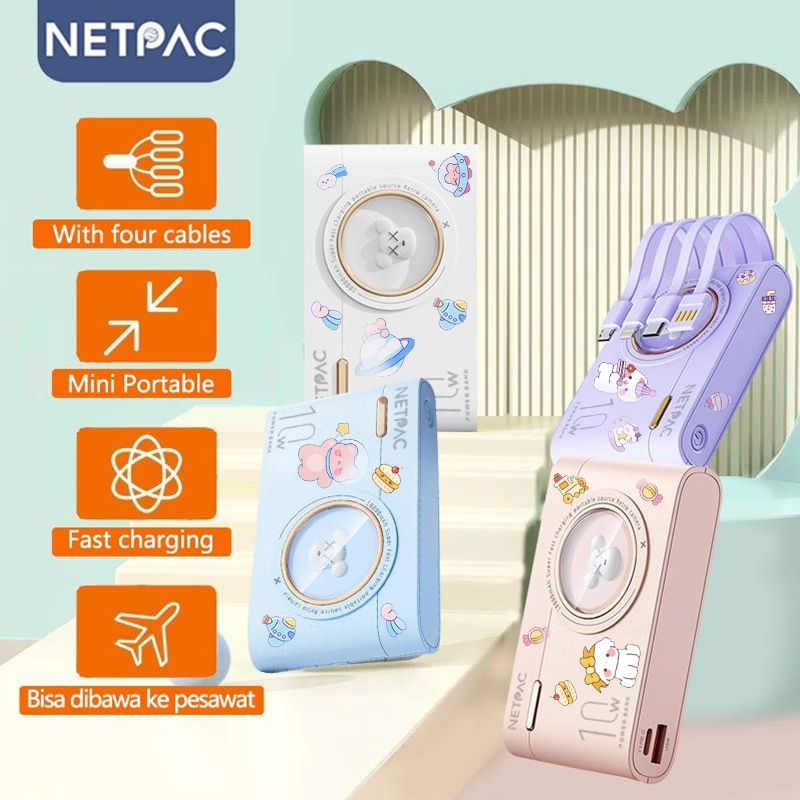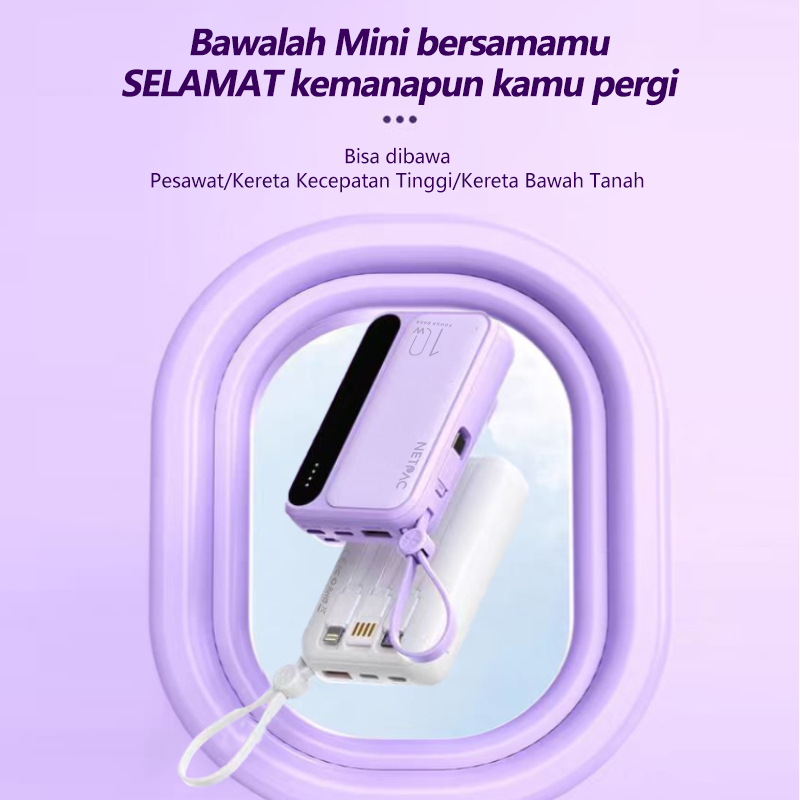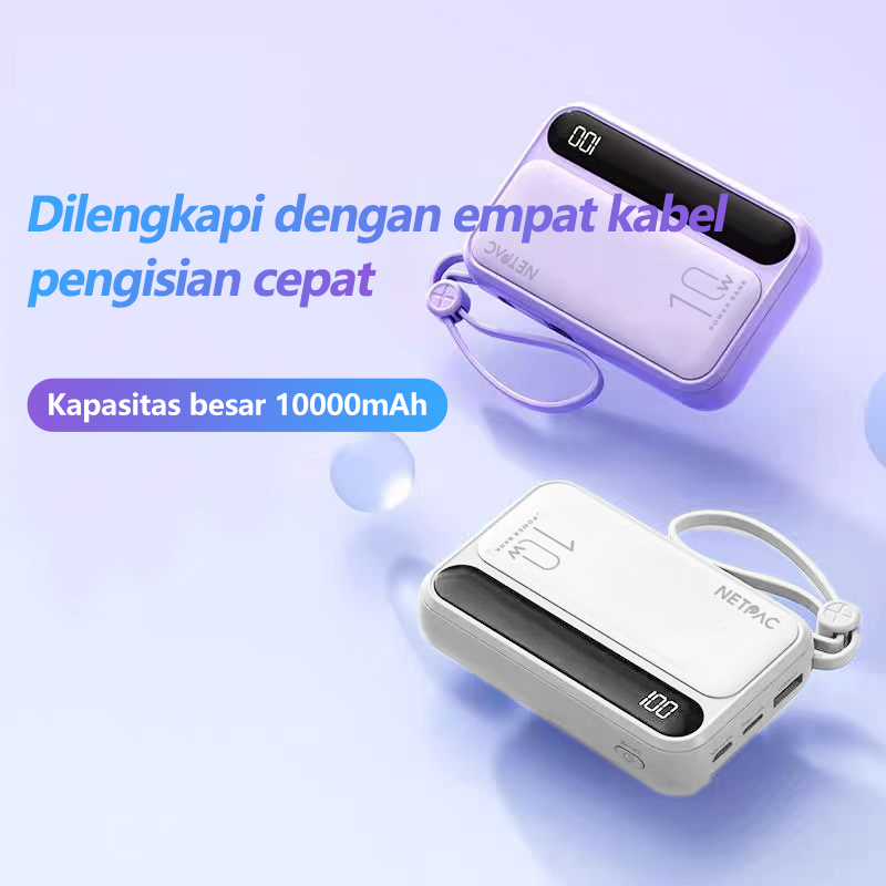 [Star]Powerbank 10000mAh Fast Charging Murah Mini Lightweight LCD with 4 Kable Data