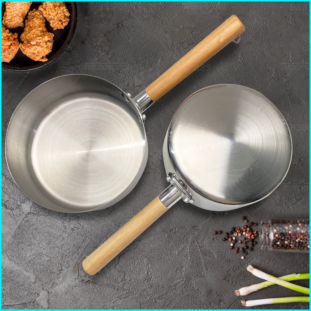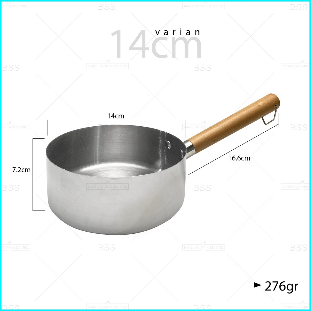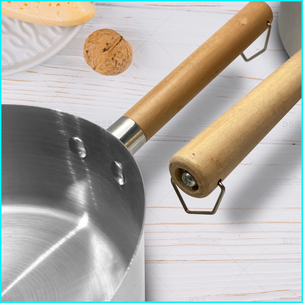 Panci Susu Milk Pot Pegangan Kayu 14cm 16cm 18cm Stainless Steel Murah