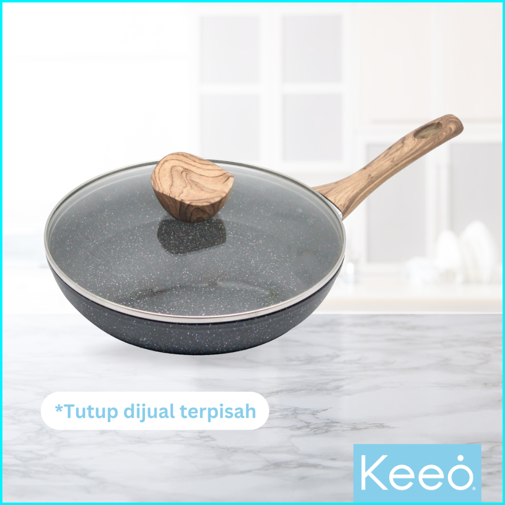 Keeo 22 Cm Wajan Teflon Penggorengan Frypan Anti Lengket Marble Granit Hitam