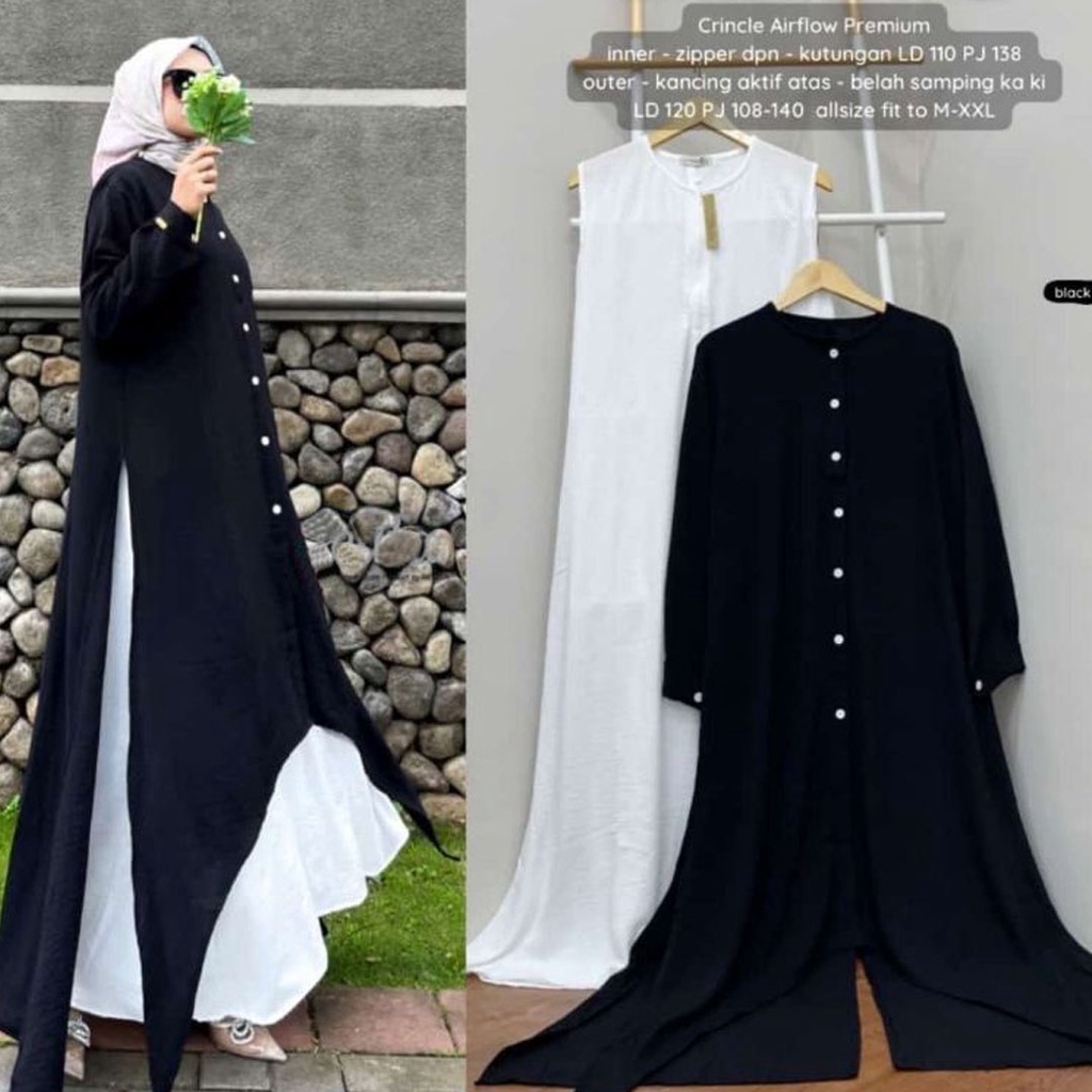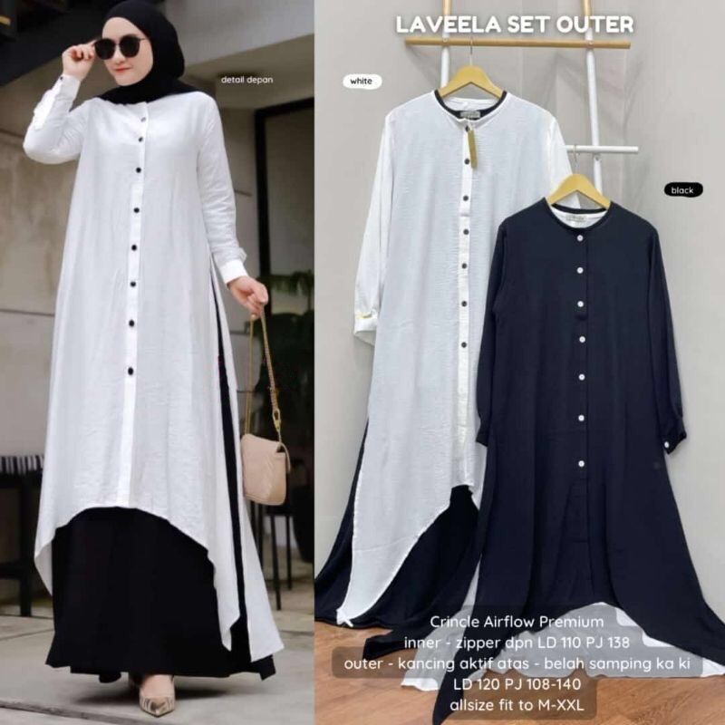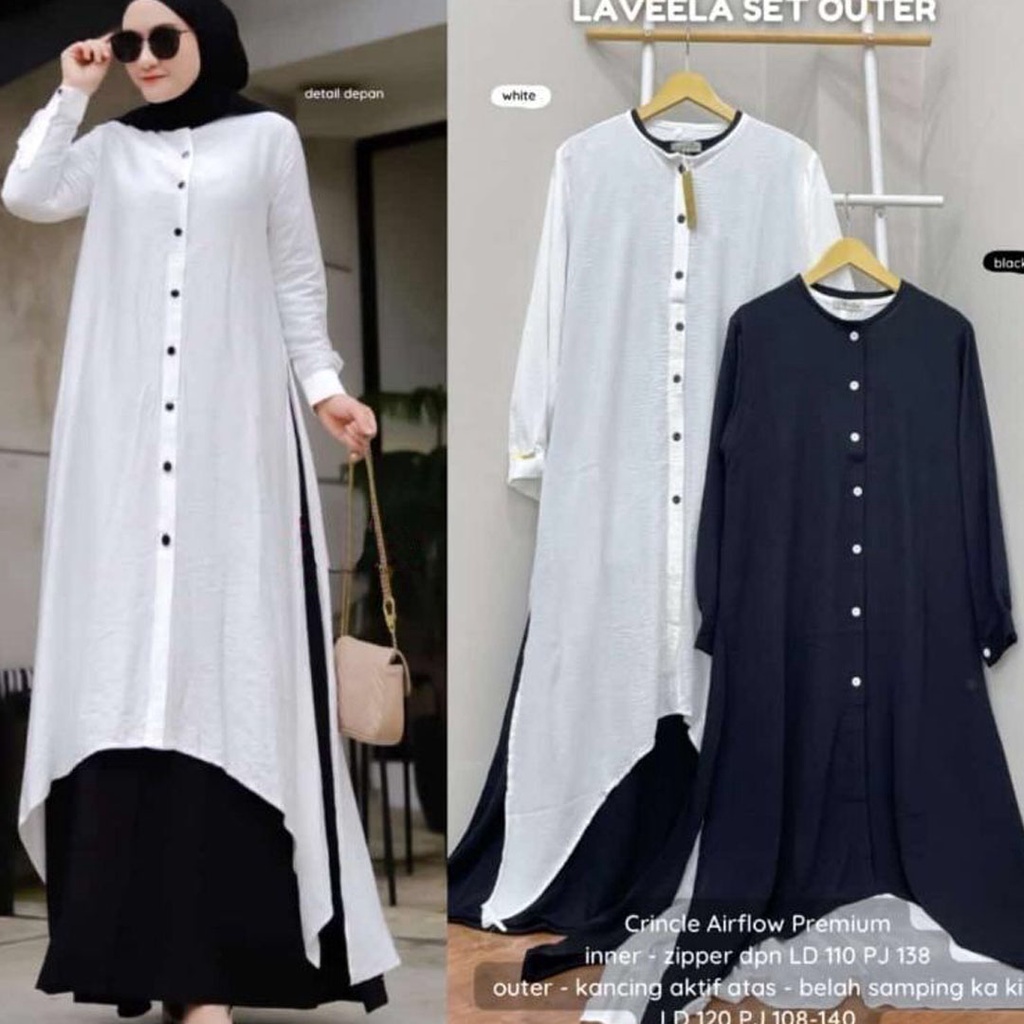 Vallina Outfit - Laveela Set 2in1 Setelan Maxy Dress + Outer Muslim Wanita Modern Crinkle Premium M - XL