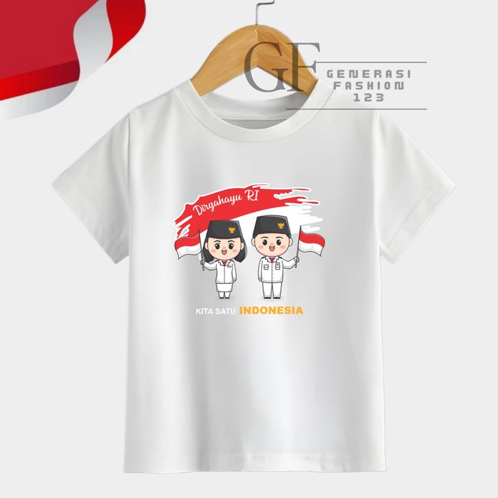 Kaos anak combed 24s Cowok cewek lengan pendek cocok acara 17 agustus HUT RI 80 TH atasan anak