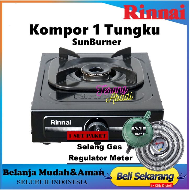 Kompor Gas Rinnai RI-201S+Selang Gas+Regulator Meter Terbaru Kompor Gas Ceflon Sun Burner Hitam Kompor Gas 1 Tungku