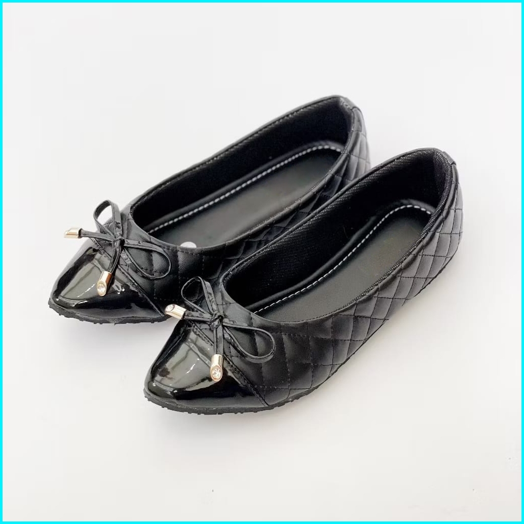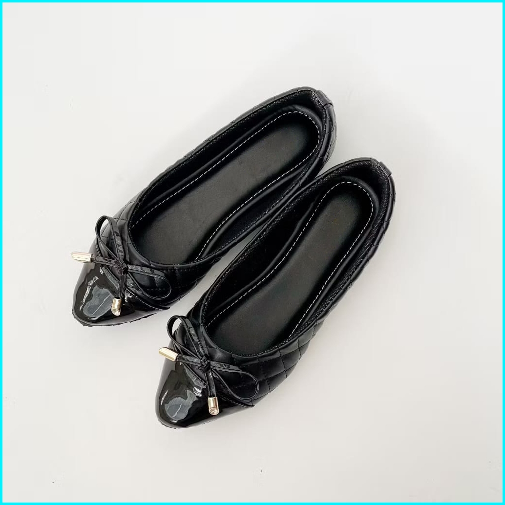 Sepatu Balet Flatshoes Teplek Wanita Hitam Kerja Elegan Murah Kekinian Korean Style Lt 15