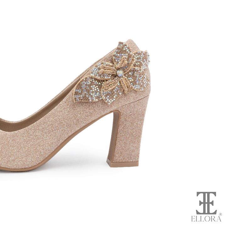 Promo Sepatu kondangan ELLORA EM-8603 Sepatu Heels Pesta Wanita Bahan Kanvas Glitter Import 8cm