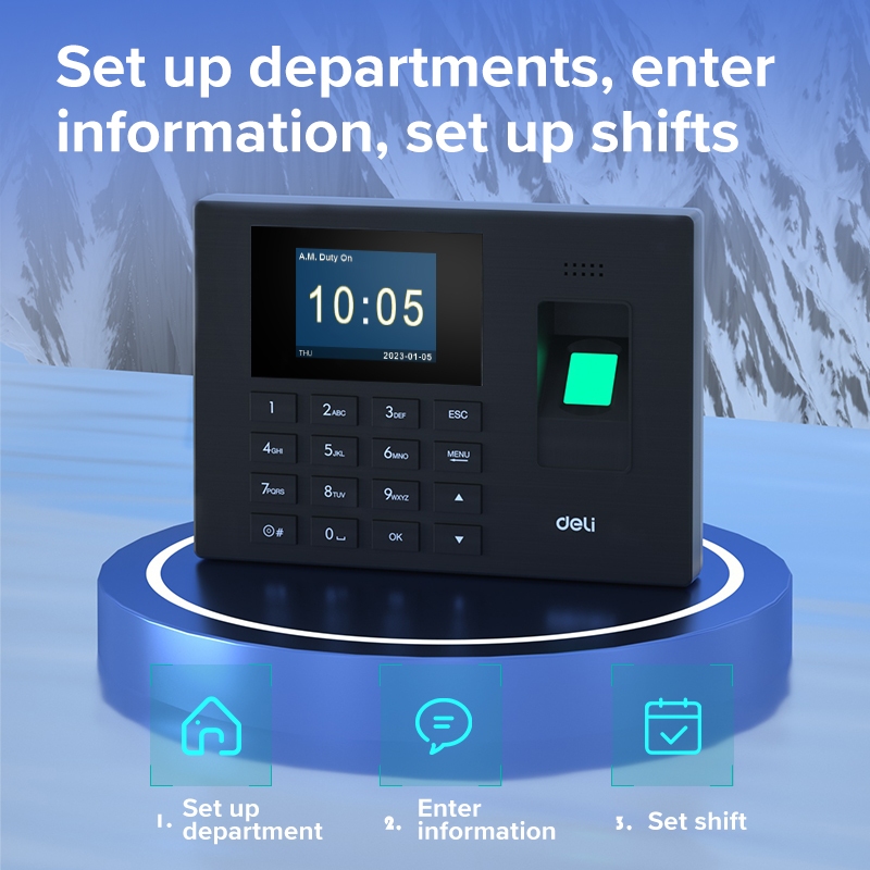 Deli Mesin Absensi Sidik Jari Kapasitas 1200 Bahasa Indonesia Laporan Otomatis ES151