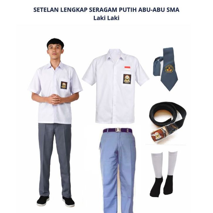 Seragam Sekolah SMA Laki laki Baju Pendek Celana Panjang Slimfit Putih Abu-abu Lengkap Terlaris