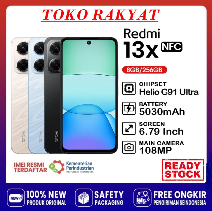 (BEBAS ONGKIR) Hp XIAOMI REDMI 13X RAM 8+128GB | Helio G91 Ultra | Camera 108MP | Batery 5030mAh