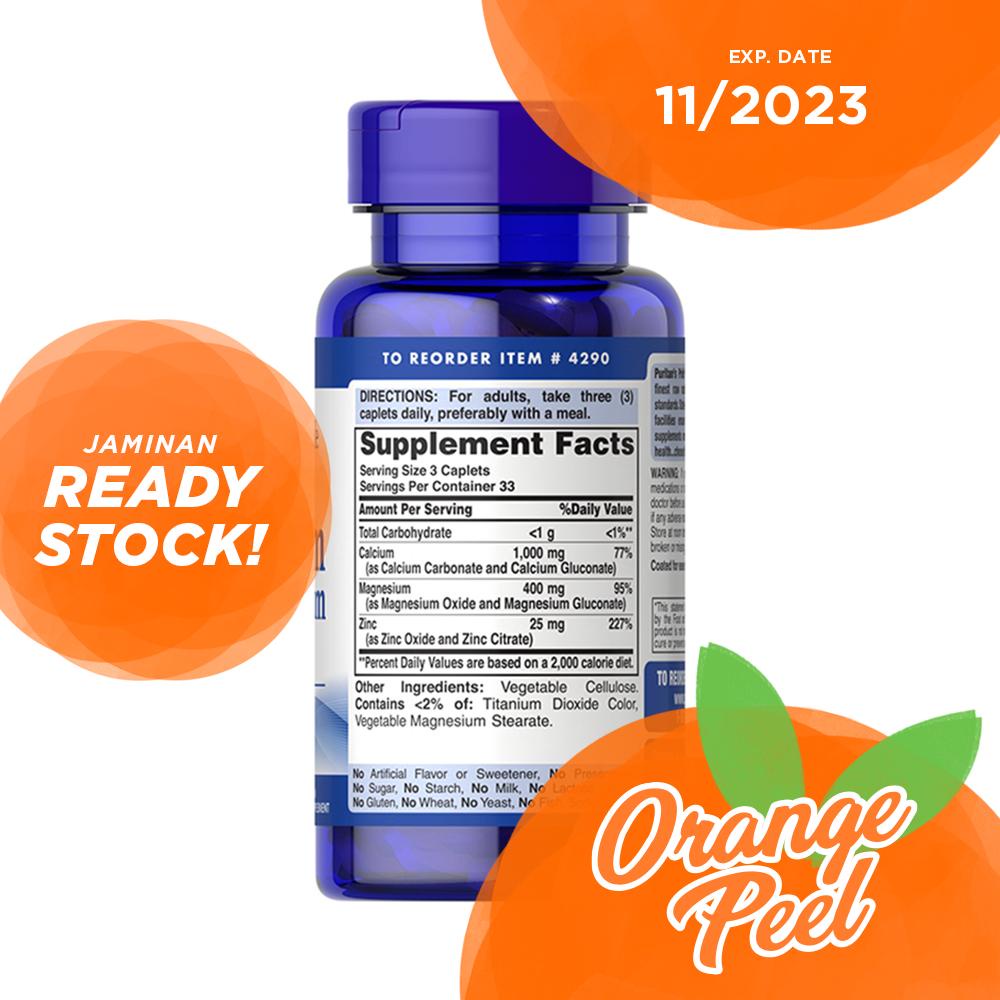 Puritan Pride Chelated Calcium Magnesium Zinc 100 250 Tablets