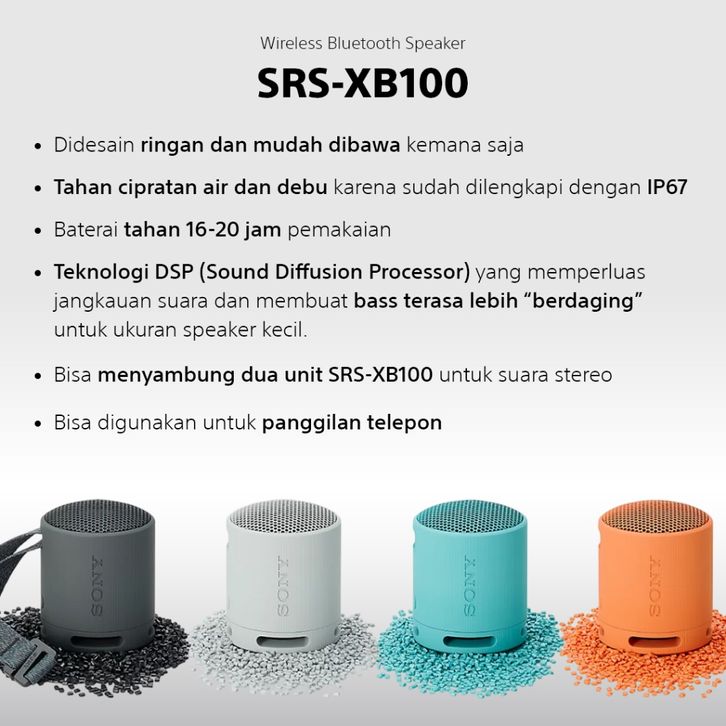 Speaker Portable SONY SRS-XB100 Bluetooth Extra Bass Support Android & iOS