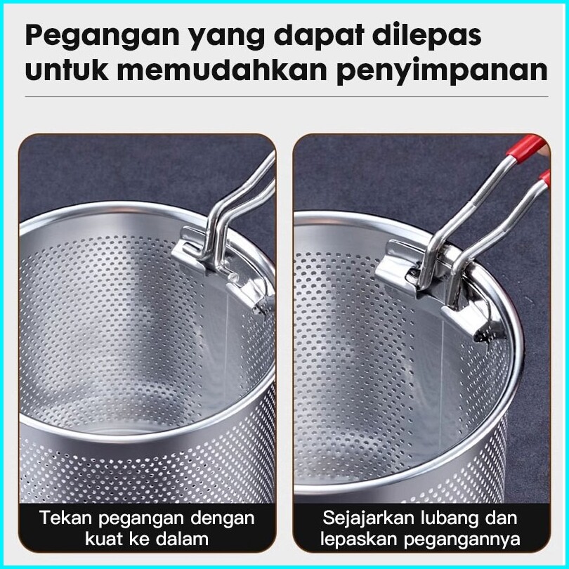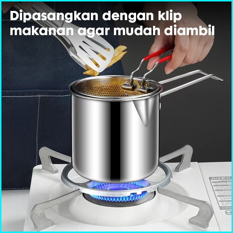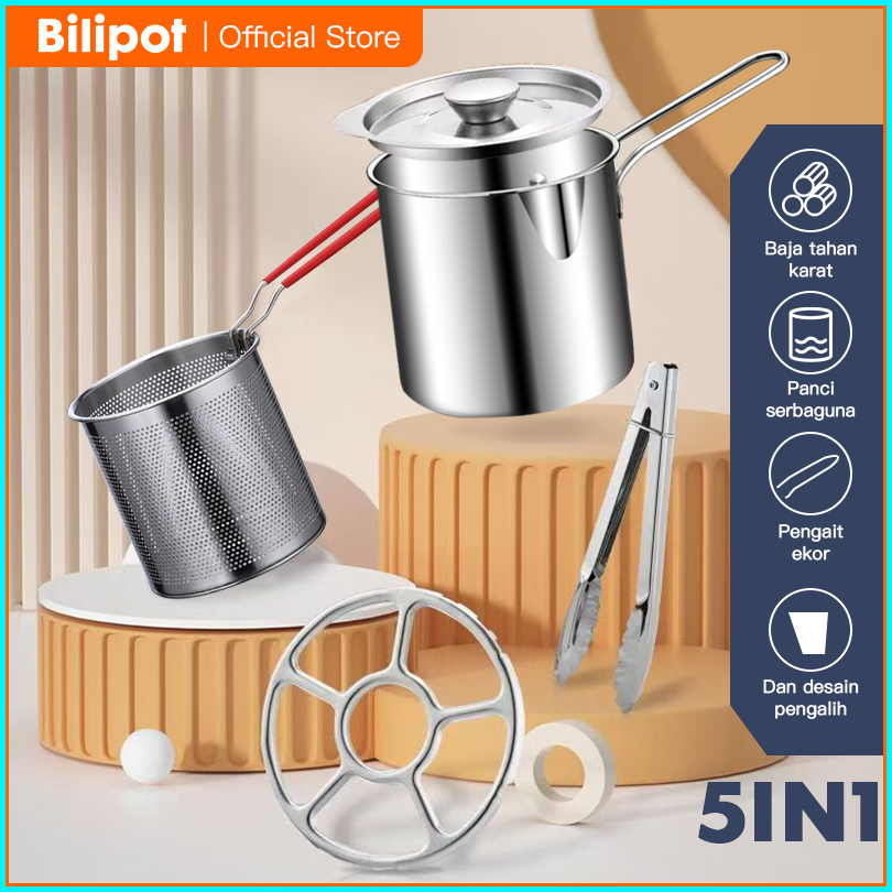 Bilipot Deep Fryer 13cm 5in1 Panci Penggorengan Stainless Steel Multi Set Saringan Penggorengan Klip Makanan Tutup Kompo