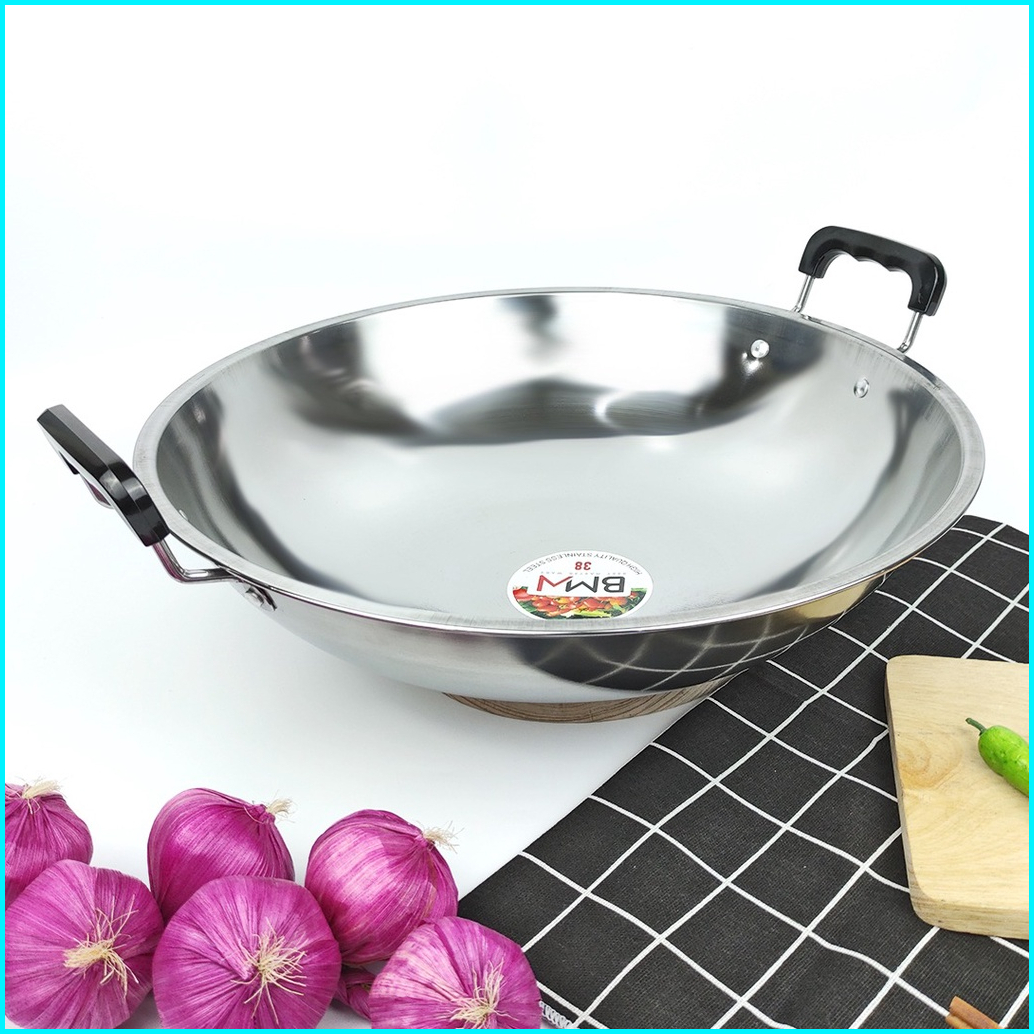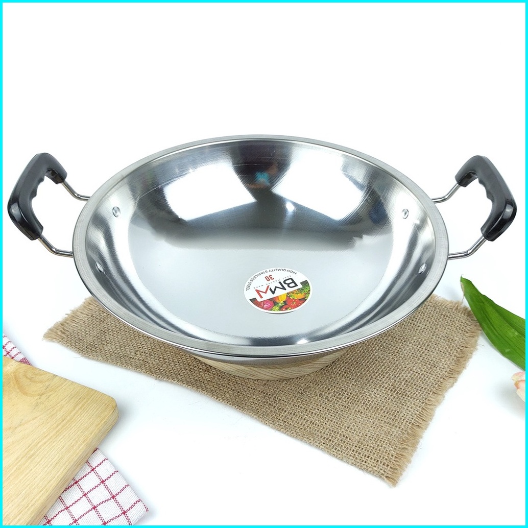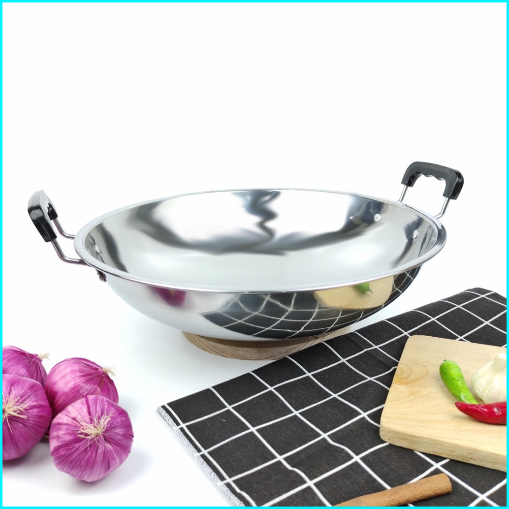 Wajan Kuali Penggorengan Stainless Steel Wajan Premium 2 Gagang Tebal Anti Panas