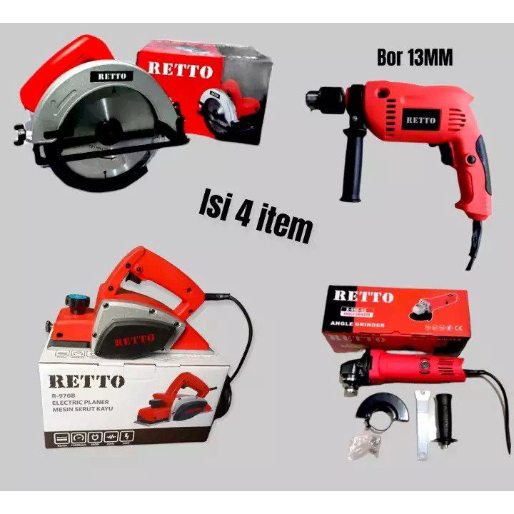 BISA NEW [4 ITEM] Paket Tukang kayu lengkap mesin planer/serut dan circular gerinda dan bor 10set