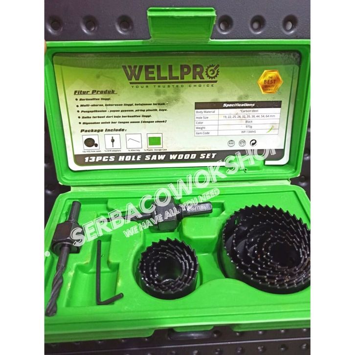Wellpro HoleSaw Kit Hole saw Set 13 pcs Carbon Steel Mata Bor Pelubang Kayu Termurah Berkualitas