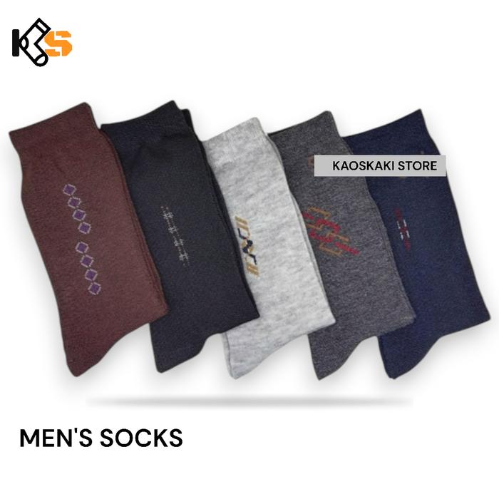 Paket 3 Pasang, Kaos Kaki Kerja Kantor Pria Dewasa Panjang Motif Minimalis Bahan Katun Lembut Allsize 38-43 - 3 Hitam Mo