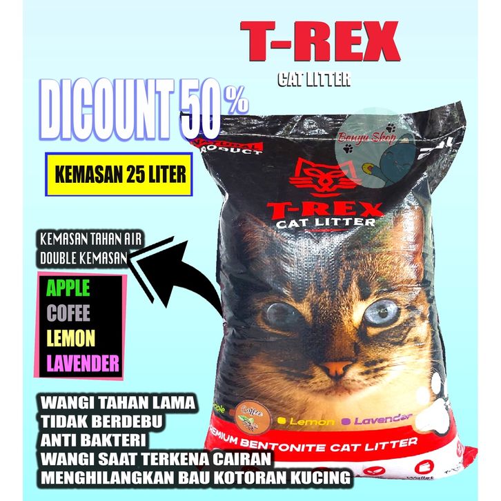 25 LITER T-REX PASIR GUMPAL WANGI,PASIR KUCING GUMPAL WANGI