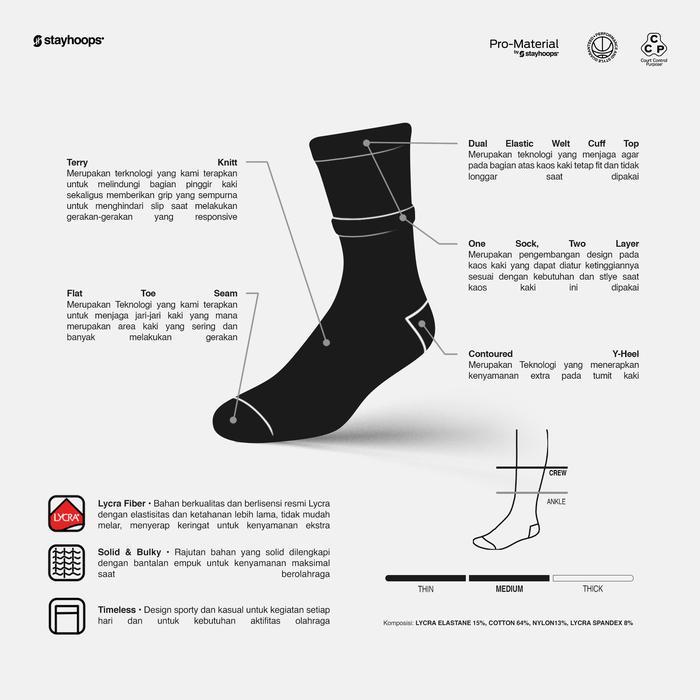Kaos Kaki Fashion Olahraga Stayhoops- Snow Beam Double Dip Performance