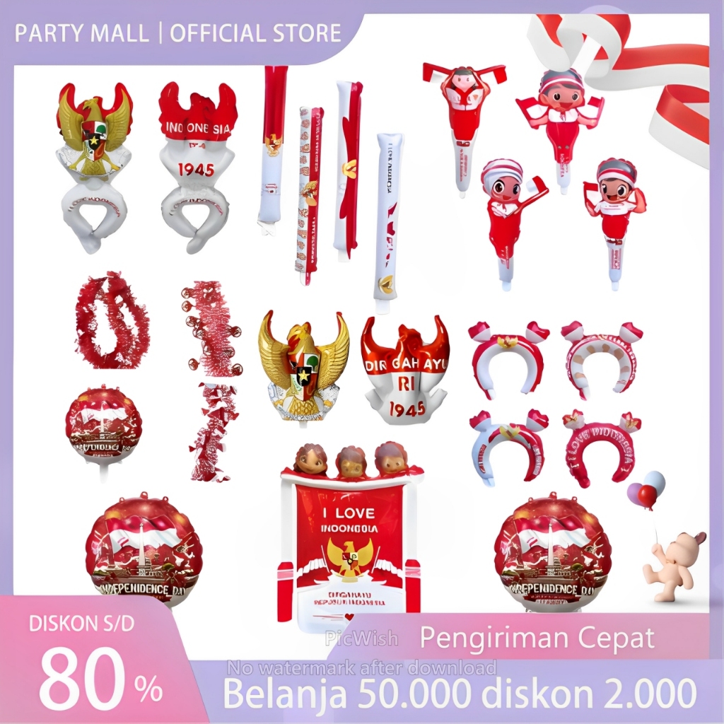 Balon Foil Merah Putih Kemerdekaan Balon Bando / Balon Pentungan / Slinger Merah Putih / Balon Tiang Bendera / Balon Pen