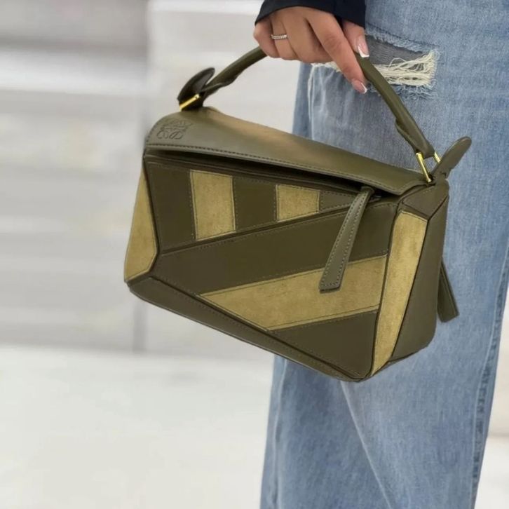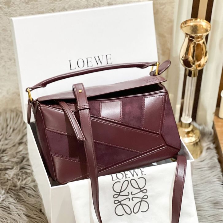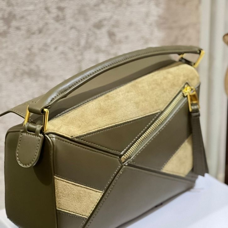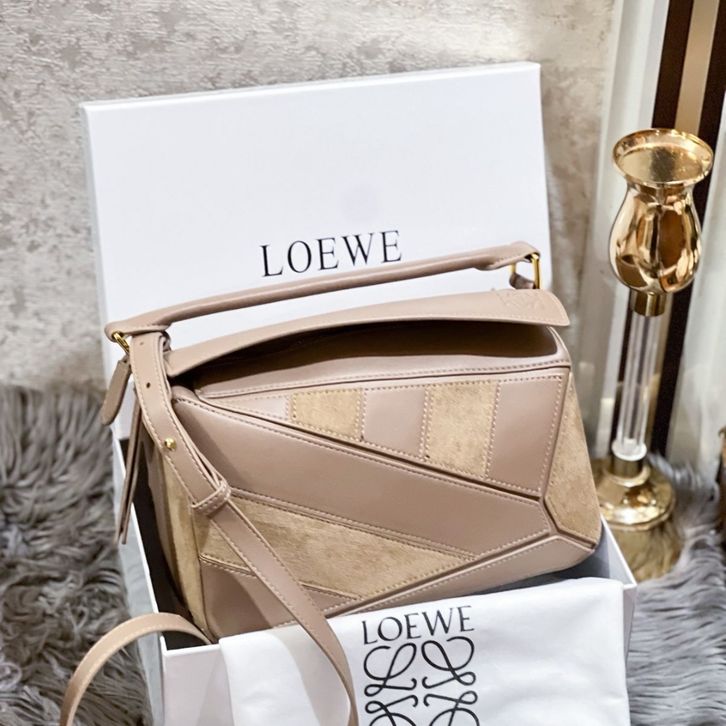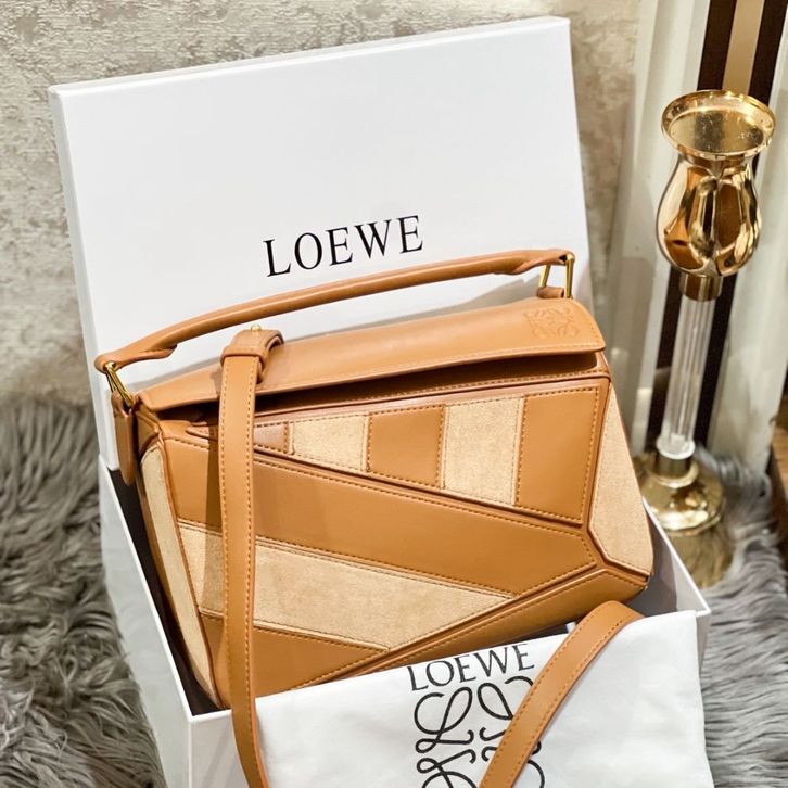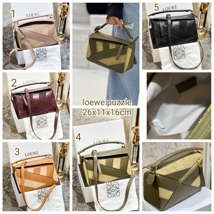 TAS LOEWE PUZZLE GHW IN SUEDE COMBI LEATHER PREMIUM/TAS WANITA LW SHOULDERBAG 26CM/TAS BRANDED TERBARU