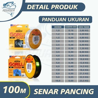 GOFISH - Tali Pancing Berkley Gorilla Senar Pancing 100m SuperKuat & Tahan Bahan Nilon