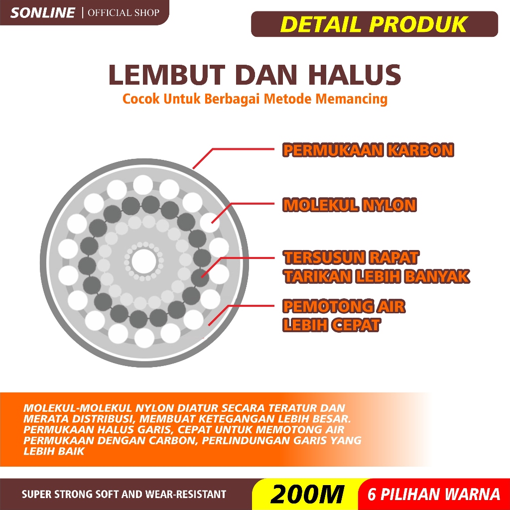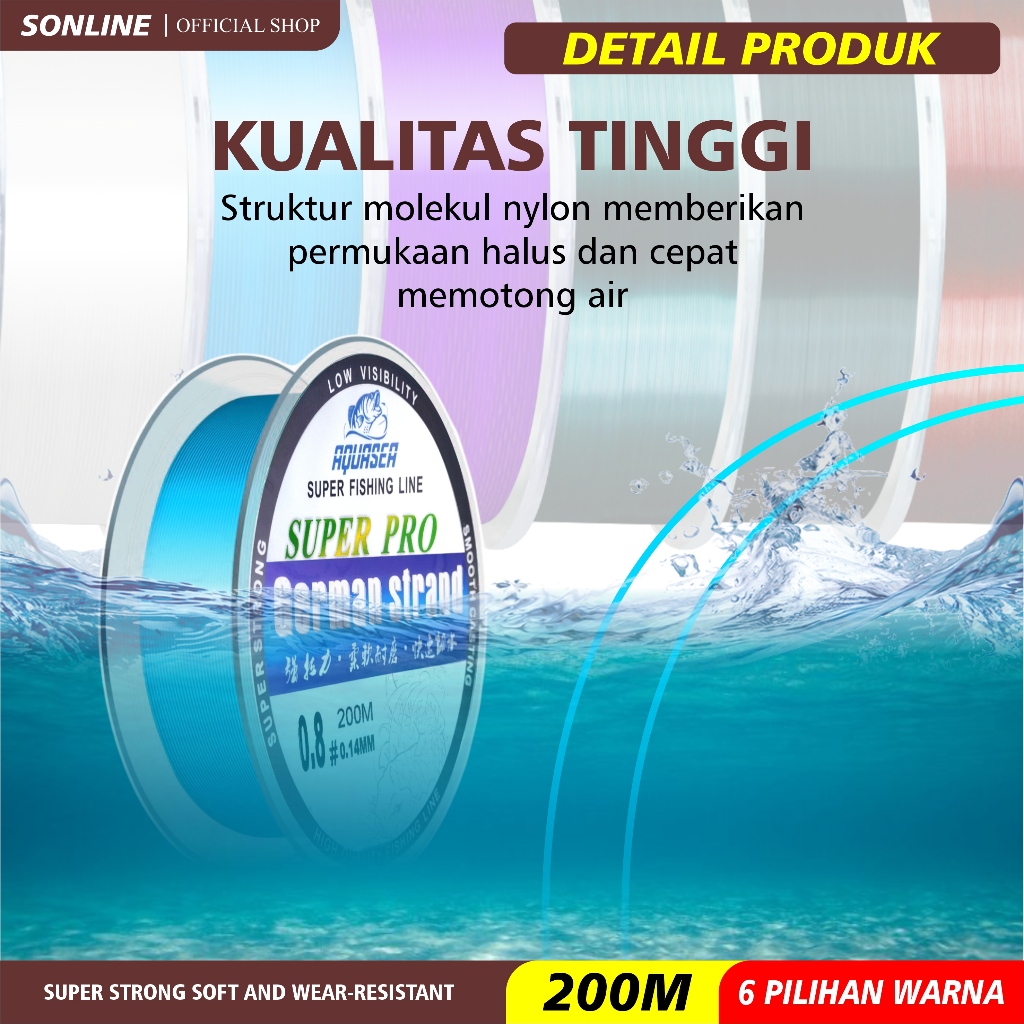 SONLINE - Tali Pancing Germany Fishing Line 200m Senar Pancing Premium Invisible Bahan Nilon Tahan