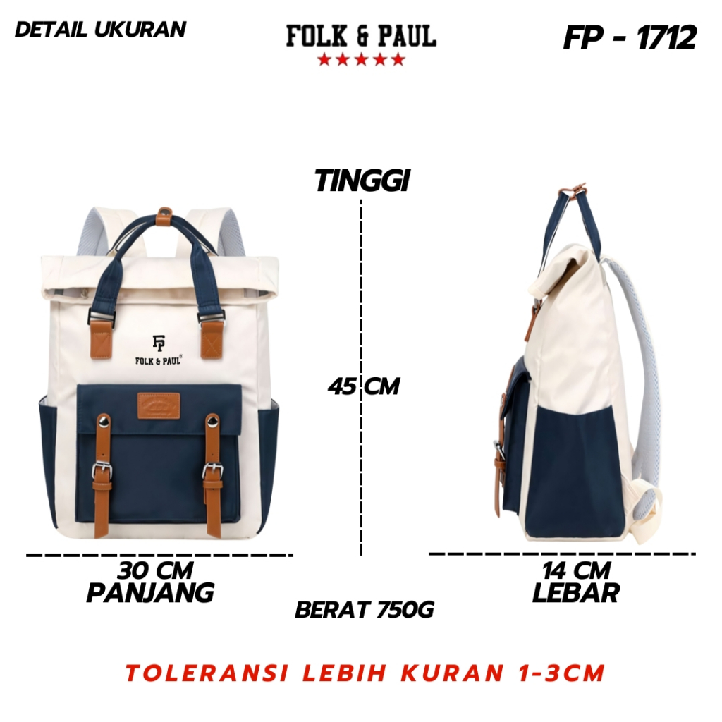tas sekolah anak FOLK & PAUL Tas Ranse Kerja Kuliah Model Doughnut Large Backpack Laptop Keren Stayl Korean FP - 1712