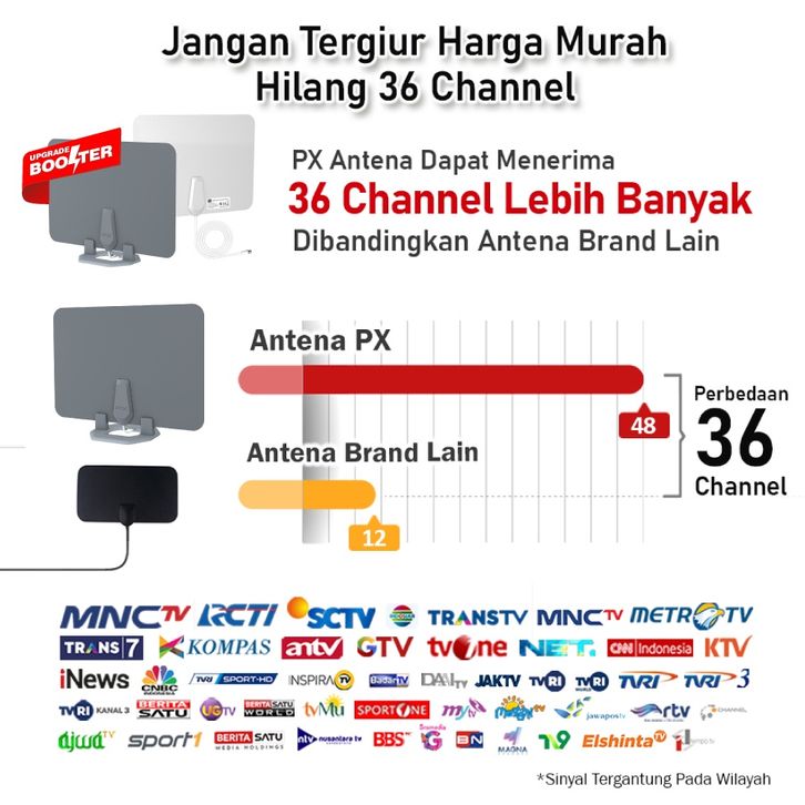 Antena TV Dinding Digital Analog Indoor DVBT2+Booster PX UDA-3100A