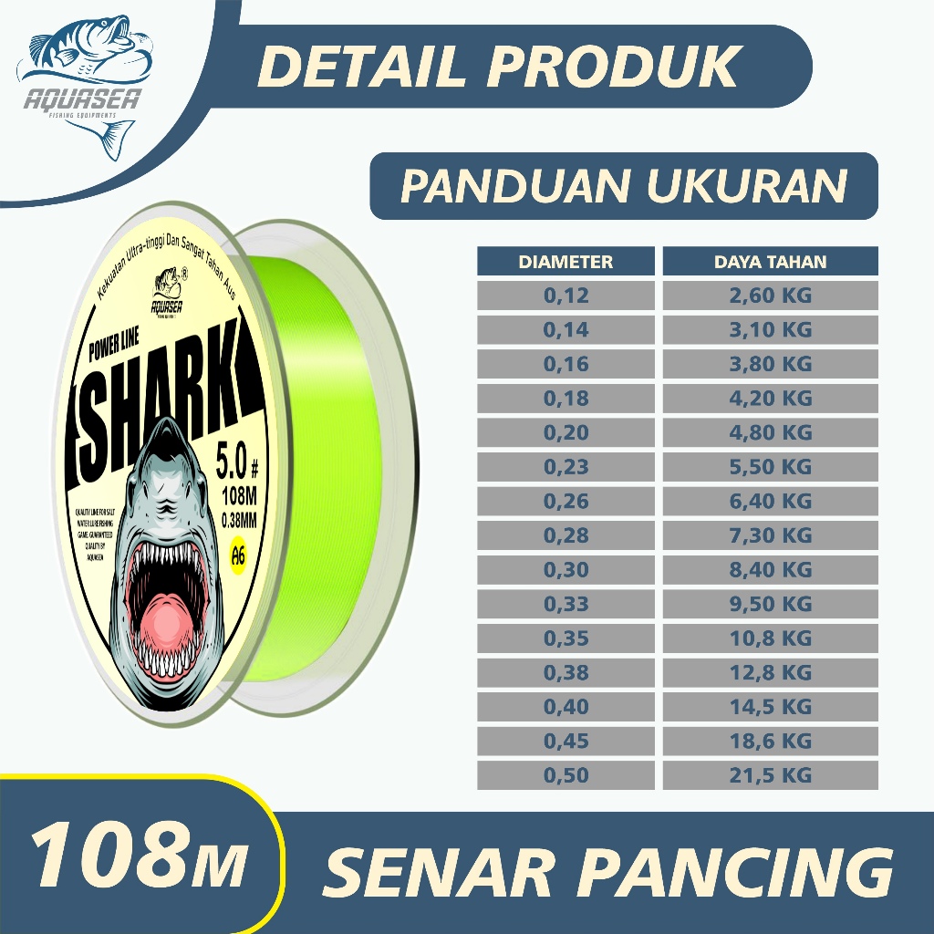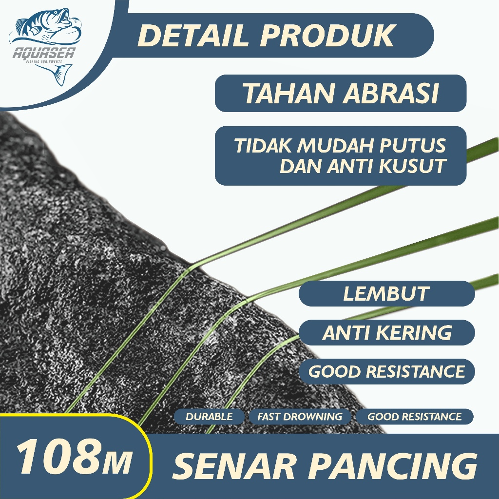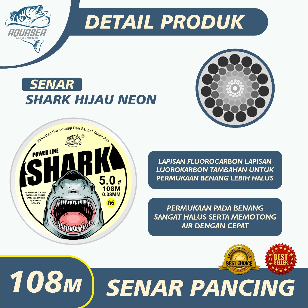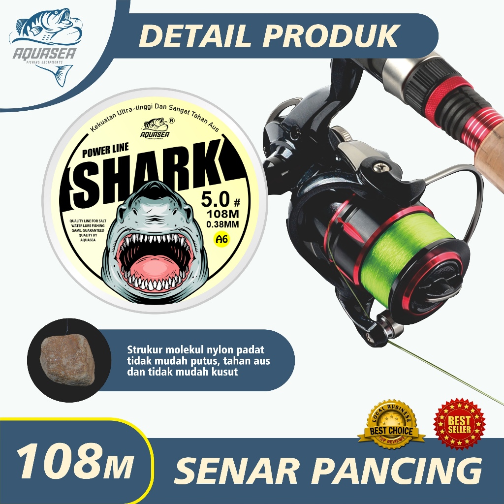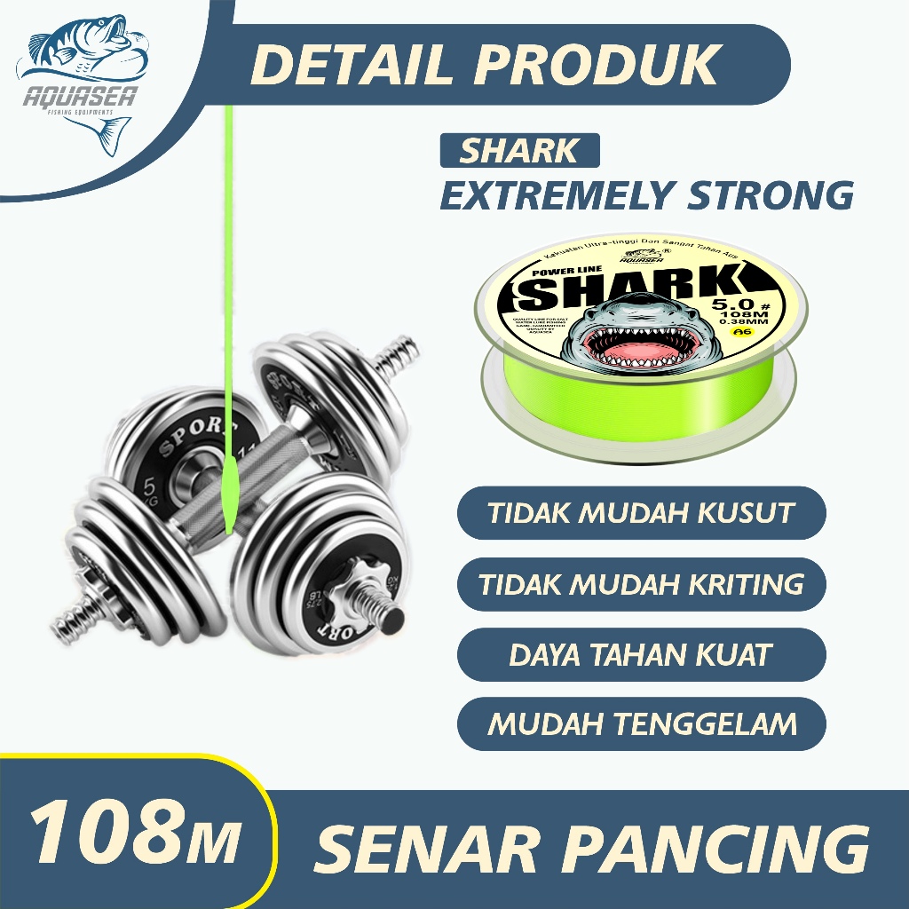 AQUASEA - Tali Pancing 108meter Warna Hijau Stabilo Senar Pancing Bahan Nilon Super Aus Senar Shark